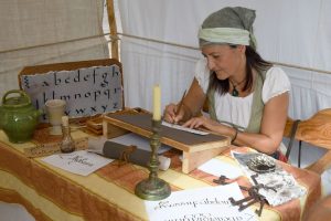 Nous vous invitons à découvrir les deux activités que nous vous proposons d’intégrer à votre événement médiéval : voyage au temps des chevaliers et découverte de la calligraphie.